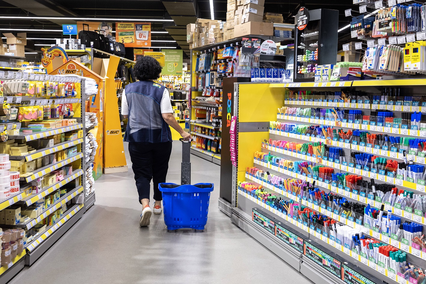 Achats des fournitures scolaires pour la rentrée des classes dans un établissement Bureau Vallée en France. Photo : Syspeo / Sipa