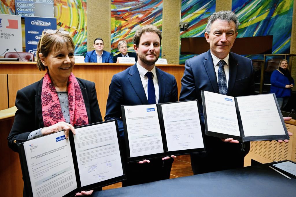 Le 15 décembre, le ministre délégué aux Transports signait un plan de « 1,4 milliard d’euros à parité entre l’État et la Région Grand Est. 2,120 milliards d’euros d’engagements de la part de tous les partenaires et maîtres d’ouvrage. Et qui s’ajoutent à d’autres crédits sur les grands projets, les opérations de modernisation du réseau routier national, le fret structurant, les pistes cyclables hors véloroutes ».