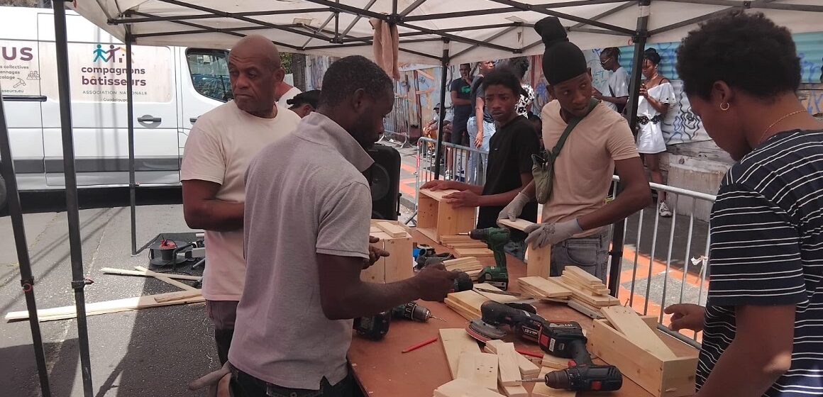 À Bas-du-Bourg à Basse-Terre, le bricobus a fait arrêt le 17 mars dernier. Des établis, des planches, des outils, des mains. La ville a confié aux associations Compagnons bâtisseurs et Alefpa-Sianka le soin d’organiser ce rendez-vous qui annonce le lancement d’ateliers ouverts à tous en mai. Ou plus précisément, ouvert à ceux qui sont éloignés de l’emploi. Au programme : fabrication de jardinières en bois, initiation aux bases de la plomberie, apprentissage des rudiments de l’électricité.