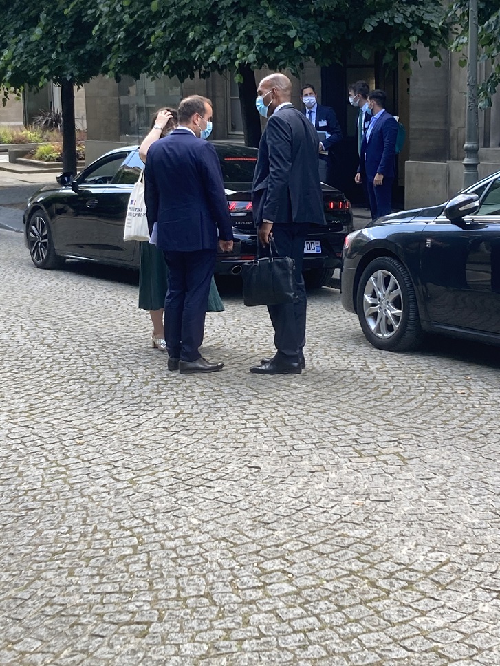 Olivier Serva, député LREM de Guadeloupe et Sébastien Lecornu, ministre des Outre-mer, à leur sortie ce 9 juin, de la commission des Finances de l'Assemblée nationale. Photo : LCG/Stanislas Noyer